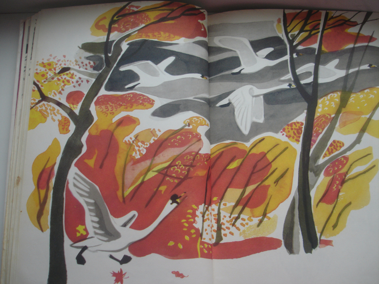 У меня такой же сборник У нас под крылом и любимый осенний разворот с Лебединым горем. Кое-какие тонкие очень знакомы, тоже были, но я их пораздала, заменила