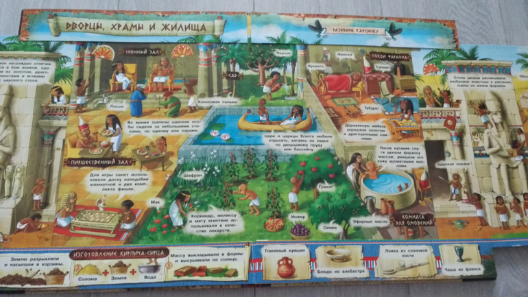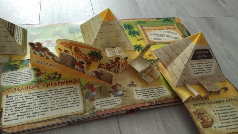 "Фараоны" от изд-ва Лабиринт-пресс. первый раз я купила книгу полтора года назад, и мы ее подарили пятилетней сестренке. Девочка была в восторге, родители сказали позже, что потом скупили все книги про Др.Египет, настолько эта книга ей понравилась и пробудила интерес к истории Египта. Пришлось мне купить второй раз, своим сыновьям) старший увидел, попросил почитать. Очень понравилась ему, читали много раз, рассматривали и старший и младший. Книга, действительно красочная, яркая, с выдвижными и об'емными элементами. Если так можно сказать, книга у сына стала хитом)