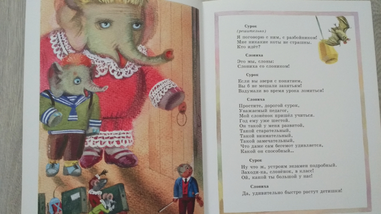 "Слоненок пошел учиться" Д. Самойлов. Как я люблю эту пьесу!) Какие рифмы и игра слов!) Для меня Давид Самойлов - виртуоз слова) читала обоим сыновьям, выслушали все произведение, но остались равнодушны. Правда, младший очень любит этот мультик, все три части, про Слоненка. А Арсений даже мульт не стал смотреть)
