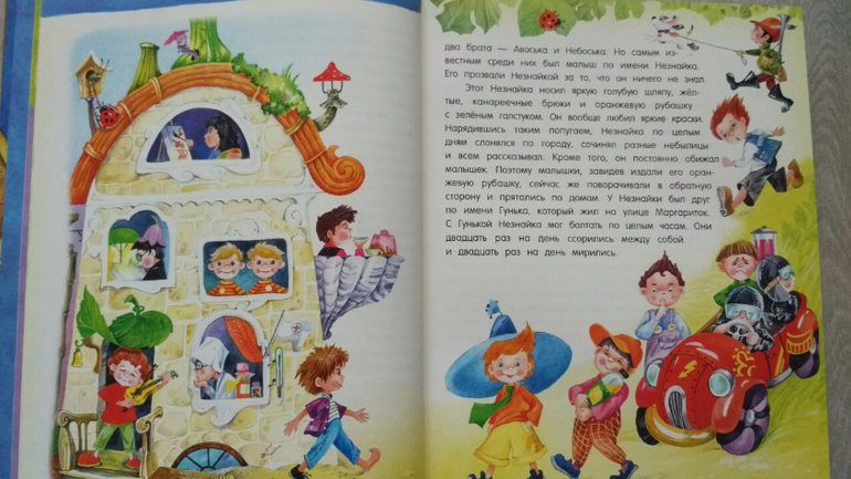 "Приключения Незнайки и его друзей" Н. Носов. Частенько включаем аудиосказку в машине, когда едем, сыну очень нравится. Решили почитать книгу. С Незнайкой сложные отношения)) Сначала я купила все 4 части Незнайки с илл. Борисова. Знала, что " пережареные" иллюстрации. Но мне казалось, что это лучшее издание. В итоге читать я не смогла, дико раздражали рисунки. Продала. Рисунки Зобниной мне не нравятся категорически, рука не поднималась покупать, но пересмотрев все существующие издания, остановилась именно на Зобниной. В дальнейшем думаю поменять на илл. Валька. Тем не менее сыну понравилась, читаем)