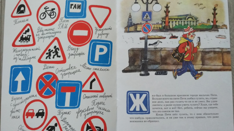 "Дорожная азбука" Анастасии Орловой. Насколько была у старшего любима "Яблочки-пятки" этого автора, настолько равнодушен к азбуке. Ни разу не дочитали до конца - сам приносит и сам убегает на середине.