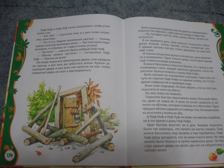 Читали «Трёх поросят» в «Любимой книге малышей». Повторюсь, надо бы побольше иллюстраций, да и хотелось бы больше конкретики. Кому нужна эта одиноко стоящая дверь?