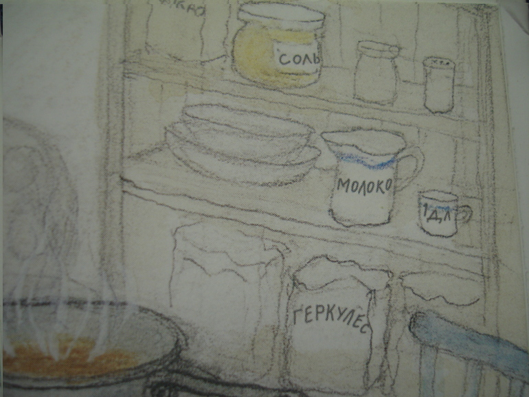 Вот ещё мои наблюдения. Обратите внимание на банку, на которой написано «Мёд».