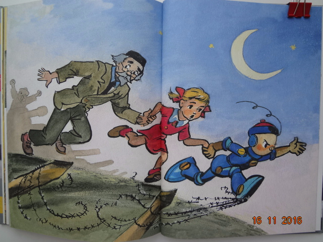 По сюжету сначала книга напомнила Буратино. Жил-был ученый профессор по имени Пилукка и не было у него детей. И вот решил он сделать себе железного сына Кьодино. А дальше начинаются настоящие приключения в лучших традициях "Гигантской груши") Сюжет пересказывать бессмыленно, но скажу по секрету, что Кьодино ждут настоящие испытания: помочь отцу заработать денег, спасти его из тюрьмы, найти настоящих друзей, научиться быть защитником, добрым и верным товарищем и сыном, спасти девочку Перлину и впоследствии быть спасенным ею от смерти.