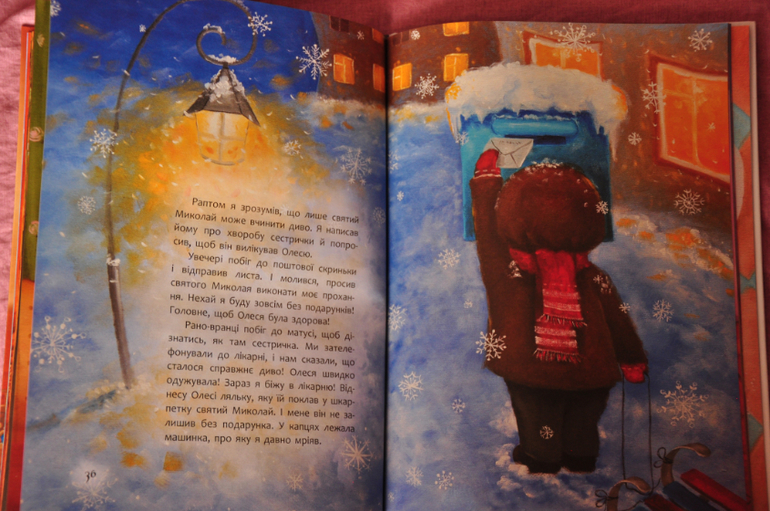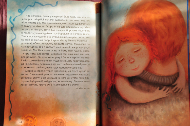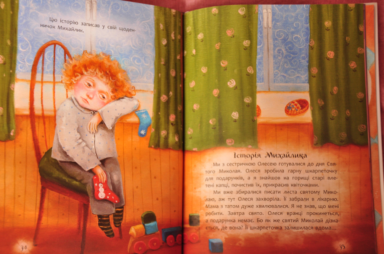 Во всех отношениях хороша книжка. Дух, атмосферу праздника передает. Иллюстрации не могу сказать, что мои. Но тут они как-то подходят теме, на мой взгляд. Есть точно такая же книга на русском, если кому интересно (с другой обложкой). Но язык украинский тут льется, словно песня). Вот прям течет реченькой)! Даже сын, пока я ему с компьютера читала то на русском, то на украинском, сказал брать на украинском, что он ему тут как русский). Это значит, что он все понял). И язык красив. Вот тут можно посмотреть-почитать. А вы уже выбирайте.