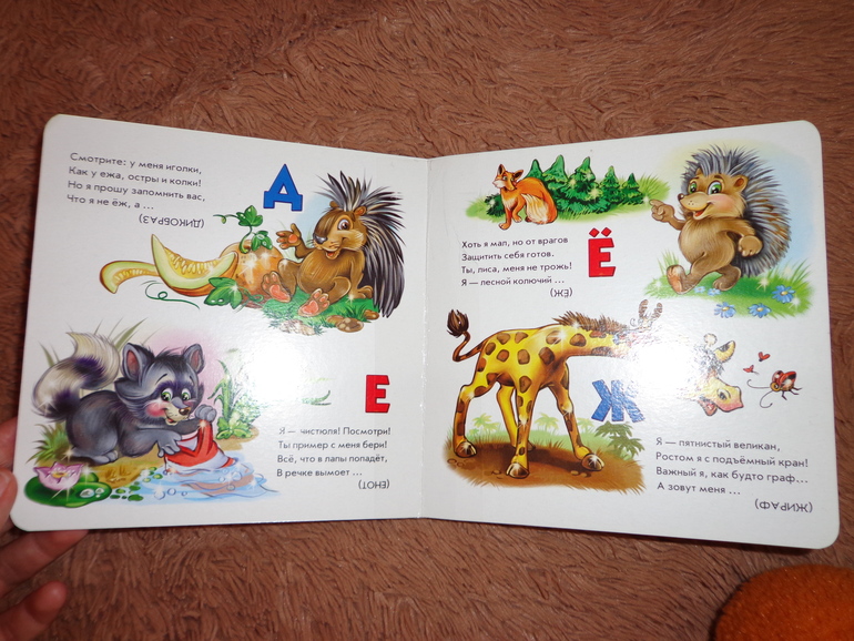 отзывыХочу показать Вам три наших книжки из серии "Интересные азбуки" от издательства Ранок. Все три имеют небольшой квадратный формат 16*16, сделаны из картона. У меня девчонки их очень любят, и потому одна из азбук уже изрядно по истрепалась. Веселые Буквы (автор Ринат Курмашев), Полезная Азбука и Азбука Загадок (автор Ирина Солнышко). Иллюстрации яркие, все животные вполне себе узнаваемы.