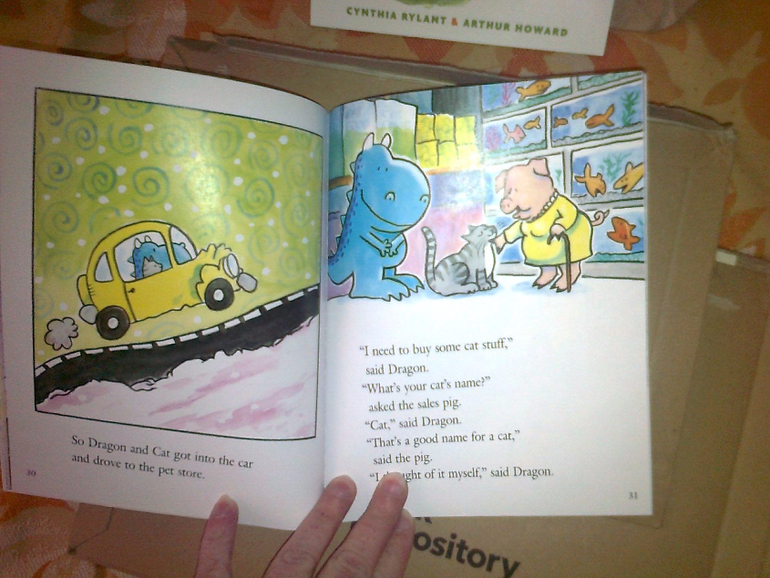 книги на иностранном языке21 октября моя душа не выдержала просьб дочки найти книжку с дракончиком из одного из ее на данную неделю любимого мультика и отыскала ее на bookdepository... Если уже делать заказ, то надо же туда хоть одну.. или две или - тут моя совесть взбунтовалась и я ограничилась заказом 3 книг. Одна из них про дракончика, одна про уже известного нам мистера Путтера и его кошку Табби и одна про библиотечного кота... Ну как же можно пройти мимо кота, да еще на фоне множества книг?