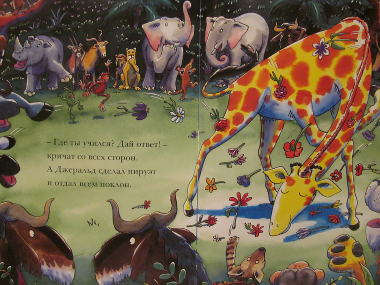 Как же я была рада, когда Илюха достал с полки две книги, которые мы давно уже не читали. Первая про моего любимого жирафа. Вы знали, что "звери в джунглях каждый год устраивают бал"? И даже неуклюжий жираф может танцевать, если поверит в себя. Это правда! (Дж. Андрэ Танцующий жираф)