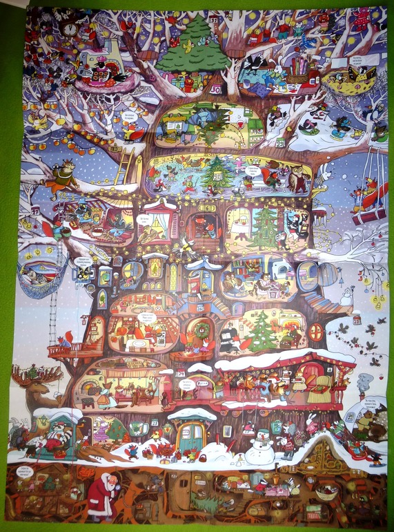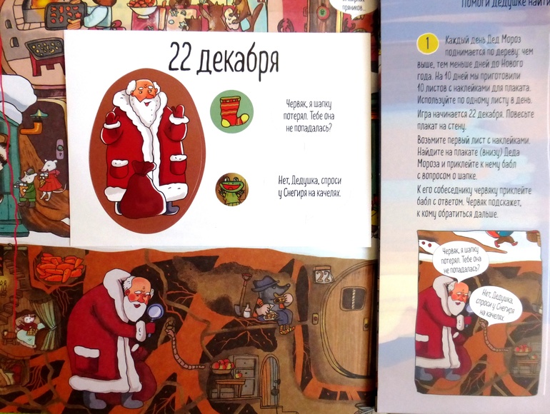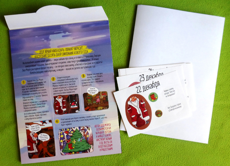 Издание по качеству очень хорошее, качественная полиграфия и наклейки, но бумагу самого плаката хотелось бы более плотную. Этот адвент-календарь отличный подарок ребенку 3-7 лет перед Новым годом.
