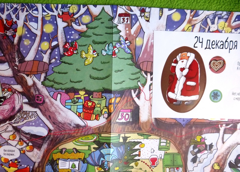 Автор календаря - уже многим родителям знакомая Ася Ванякина. Она ведет популярный блог, посвященный играм с сыном, на основе которых была издана известная ее книга «Айсберг на ковре». Очень мне и дочкам понравилась ее книжка «Чудеса в кармашке, или Поиски Деда Мороза». В этом году мы ее опять перечитываем для создания новогоднего настроения, т.к она очень занимательная, тематичная и отлично подходит на возраст старших дошкольников.