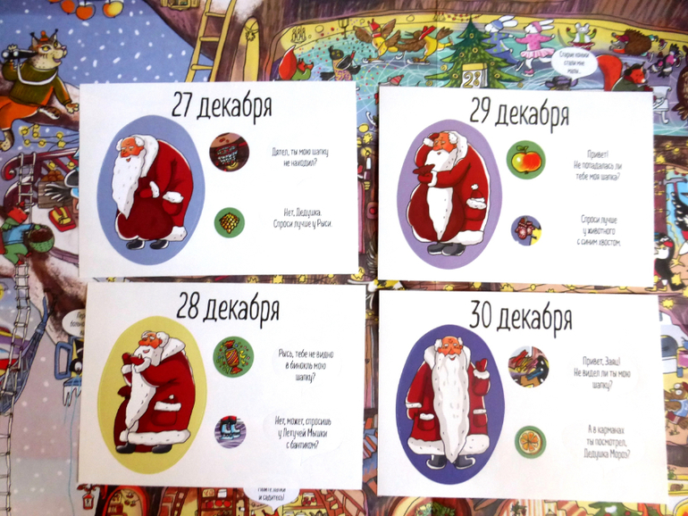 Один из таких календарей вышел в издательстве МИФ "Как Дед Мороз шапку искал". Вышел совсем недавно и уже закончился в интернет-магазинах, значит все-таки пользуются они спросом у нас))). Сейчас он есть на сайте издательства в наличии.