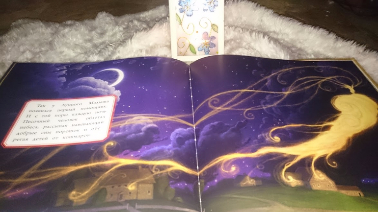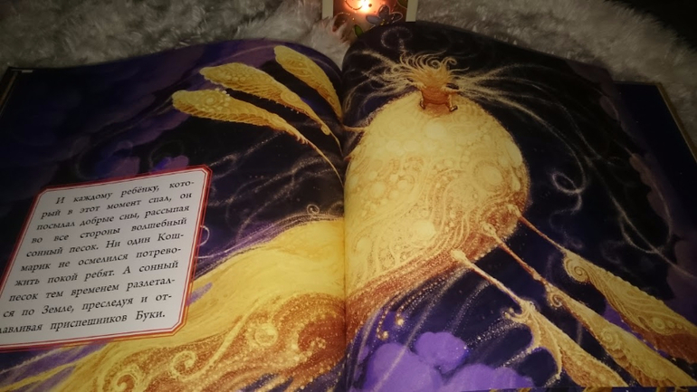 Вторая, и любимая, книга - о Песочнике. Дочка спит теперь с ней под подушкой, и если вдруг просыпается от плохого сна, стоит ей напомнить о книге, и дочь засыпает спокойно до утра.