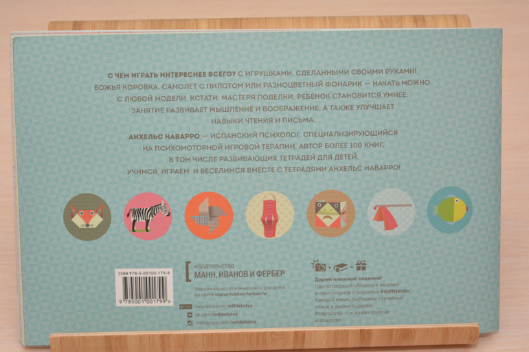 Книга очень порадовала - страницы плотные, краски сочные, всё подробно описано, ничего лишнего в инструкциях нет, ребёнок отлично понимает, что от него требуется, а самое главное, что игрушки получаются красивые и в них можно играть не один час, только аккуратно конечно же))) Я в очередной раз хочу сказать спасибо автору и издательству