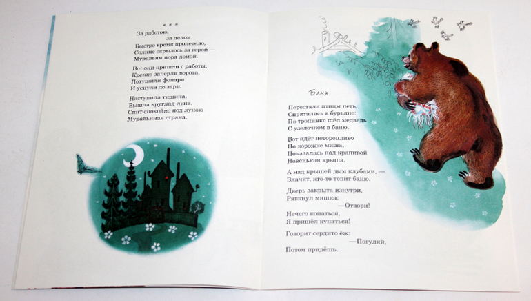 Здесь стихи не только про муравьёв, но и про других жителей леса. Про животных и насекомых. Стихи очень легкие, ребёнку на один раз, но потом будет просить почитать ещё и ещё) Иллюстрации хорошие. Ничего поучительного я там не нашла. Просто стихи.