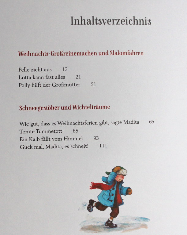 Я прочитала парочку историй, которые видела отдельными книгами во время продажи книг в нашем детском саду. На примере "Смотри, Мадита, снег идёт!" и "Томте Тумметотт" могу сказать, что книга не для дошкольников (скорее, для младших школьников, указано 6+). Во-первых, какие-то описания им будут ещё не интересны, какие-то истории будут пугать. В истории про сестру Мадиты я сама распереживалась. Спойлер: она встала на полозья телеги незнакомого мужчины и укатила так далеко - через несколько деревень крикнула ему, чтоб остановился, он удивился и высадил её в лесу. В снег, метель. Ей чудом попались добрые люди на пути, когда она в слезах прошла, сколько могла, и уже замерзала. Вот как, как такое безразличие к судьбе ребёнка возможно?!