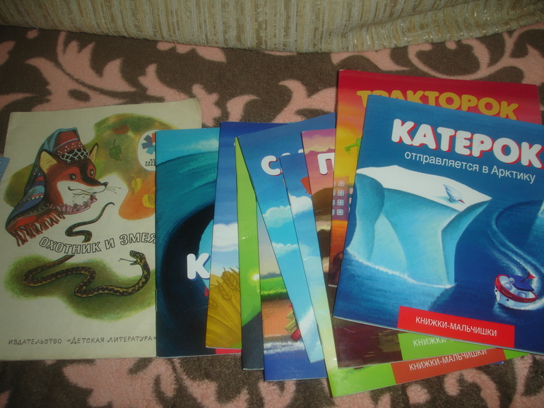 Саня по-прежнему любит, «Кота-рыболова» уже видеть не могу. Нашли ещё мою картонку с историями. Жалко, нет той, что на обложке изображена, с рыбалкой. Как я поняла, Санька тему рыбалки уважает. Всего 5 историй в картонке. Любимая у Сани - про страшного зверя, который на деле оказался котёнком, сверкающим глазами в темноте. Санька 3 дня подряд играл в «страшного зверя», «изгонял» его из всех своих машин.