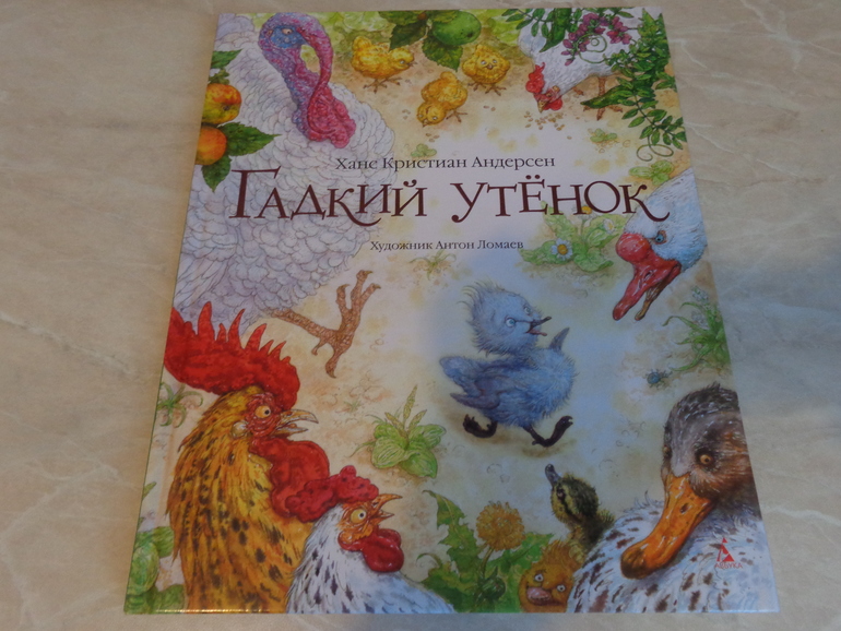 Имя Антона Ломаева обсуждается во всех книжных интернет-сообществах, поэтому не смогла пройти мимо его книг) Одной из самых красивых книг в моей библиотеке стала его знаменитая и самая лучшая для меня "Русалочка". На "Гадкого утёнка" поглядывала с опасением, так как очень настораживали негативных отзывы, что де и глаза у всех героев злые, и лужа крови на первом плане одной из страниц страшит детей...Покупка состоялась благодаря Её Величеству СКИДКЕ!) Показала я книгу своему ребёнку, и она ему безумно понравилась! Оказывается, эту сказку им часто читают в садике) Ему нравится разглядывать утят-цыплят, его совершенно не смущают злые выражения лиц недоброжелателей (ведь они хотят обидеть его любимого героя!), а лужа крови вызывает неподдельное любопытство. Конечно, дети видят мир иначе, и то, что так смущает взрослых, детям кажется вполне нормальным)