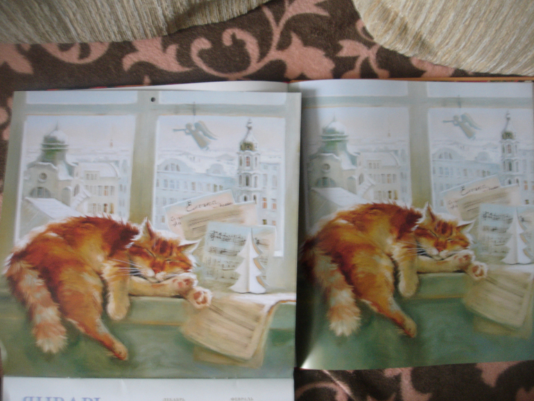 Сфотографировала на фоне календаря. Кстати, кому интересно, в календаре повторяются 5 иллюстраций из книги, одна из которых на обложке календаря, её не будет видно, когда календарь повесишь. Ну, и газету заодно покажу. Чуть бледновато вышло, потому что без вспышки фоткала. Вспышка сильные отблески даёт.