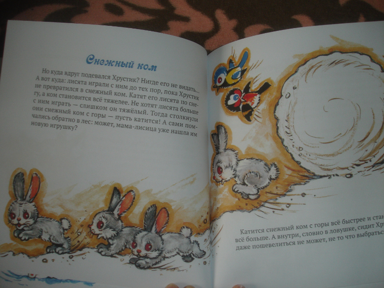 «Уж ты зимушка-зима». Заранее была морально настроена, что Саня откажется её читать. К потешкам он уже давно охладел, и волшебство Васнецова (и не только) на него уже не действуют. Однако же эти стихи мы читали очень часто. Санька узнал Колобка, всё спрашивал, где остальные. О книге говорить бессмысленно- она изумительно-идеальная. Кстати, отпечатана у нас, в Тверской области.