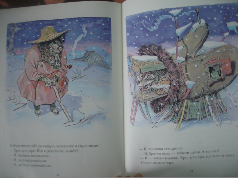 Те компьютерные картонки - подарок ребёнку, так что не мне их у него забирать. «Лиса и волк» и «Зимовье зверей» очень любит. А ещё мой потребитель рекламы внимательно изучил оборот «Зимовья», спросил, какие сказки у него есть и узнав, что у него нет «Рукавички», категорично сказал: «Мама, когда пойдёшь в магазин, купи мне «Рукавичку». Так у нас в доме появилась «Рукавичка» :) Сказка сыну понравилась, хотя можно было смело покупать и на год раньше. Игрался потом в то, что «ехал на машине, смотрю, рукавички нет, надо найти».