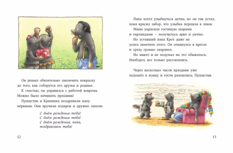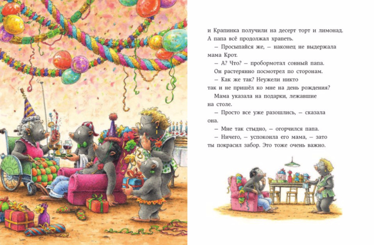Мама, папа, бабушка и двое детей - познакомьтесь с этой веселой кротовой семейкой. Они никогда не унывают! Ведь в любых ситуациях есть место и время для шутки! 30 забавных историй. Читается на одном дыхании. Смех и проказы в каждом рассказе. Остроумное решение сложных проблем. Комические ситуации и неожиданные повороты событий … И все это с веселыми картинками!
