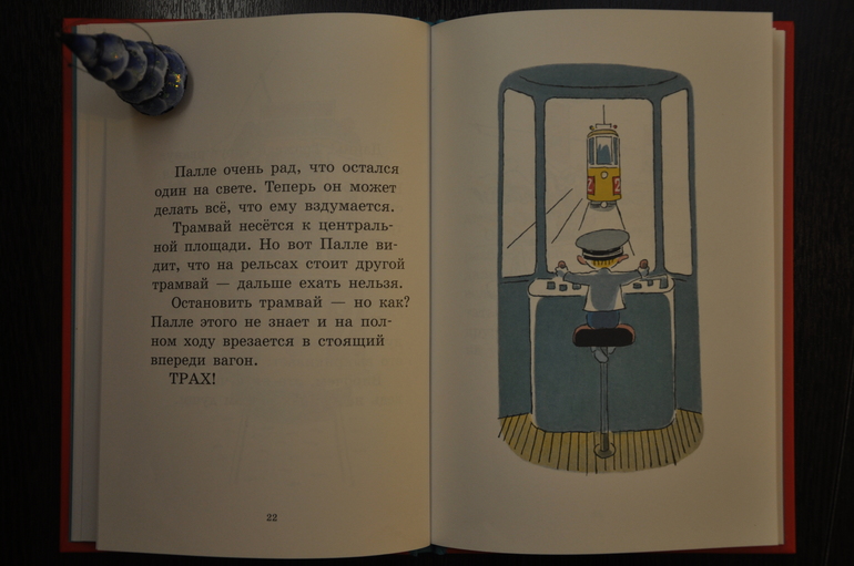 Лично я в детстве не мечтала остаться одной на всём белом свете. Но вот о шапке-невидимке любила помечтать. Невидимка тоже позволяла мне обзаводиться вожделенными игрушками и шоколадными конфетками. Книга очень удобного формата. От формата, кстати, многое зависит. Некоторые книги, недотягивающие до идеала текстом, подкупают форматом. Это не про Палле. У него с текстом всё нормально. Есть корявости и непонятки, но всё списывается на "это ж сон".![]()