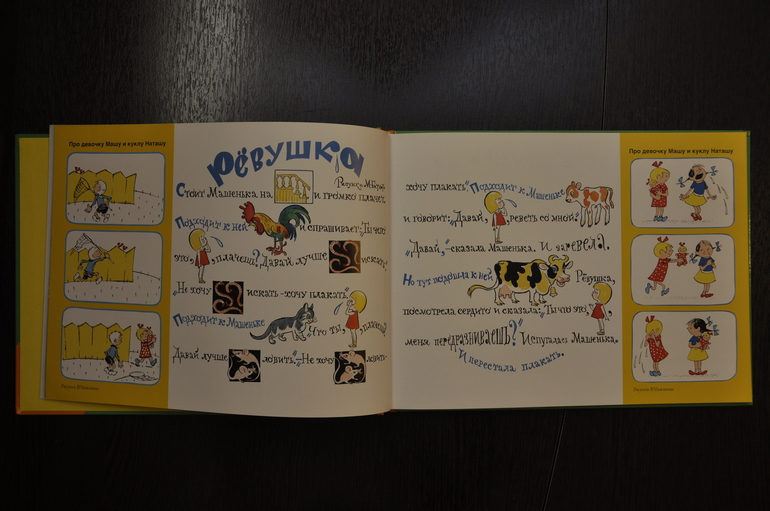 Из своего детства помню зачитанную до потёртостей книгу схожего типа и формата Радлова "Истории в картинках". Но дочь её не жалует, подавай ей Машу-Наташу. Я называю её книга-наказание. Мало того, что она у меня в печёнках, так тут же никакого отдыха! Работа-работа. Придумай, подбери слова, объясни...