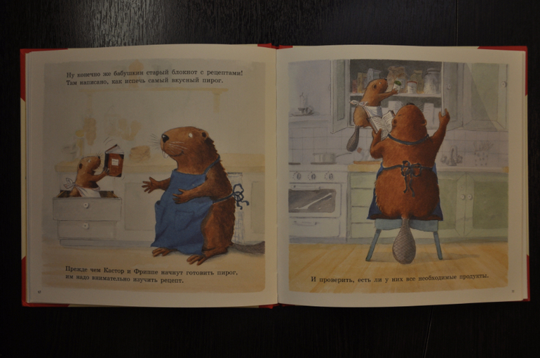 Всего Кастора любим. Но тема кулинарии понятнее и ближе нам в три года. По-моему, гениальная задумка автора. Текста с гулькин нос, но иллюстрации хороши до умопомрочения. Бывает, иллюстрациями вытягивается текст. Тут изначально текст не "размазан" по книге, а "расжёван".![]()