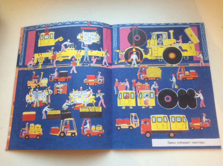 Конечно она хорошая. Но сына не так заинтересовала, как книга выше. Не такая яркая и не такая понятная. Но вот техника сыну понравилась, а рассказать что там делалина заводах мне самой тяжелее. Это надо бабушку пригласить, она то быстро все расскажет и объяснит так, чтобы интересно было.