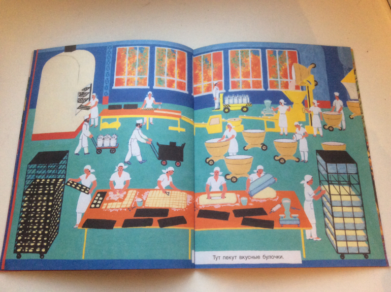 То есть в самой книжке нет пояснений. Есть только короткий текст типа "тут пекут булочки", а вот что конкретно делает каждый человек не рассказывается. И это огромный минус