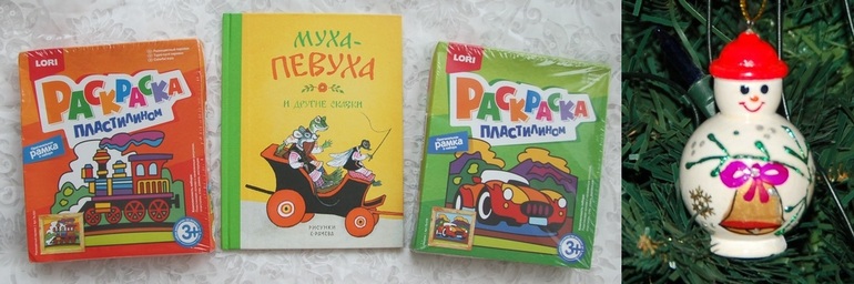 Муха-певуха лежала у меня в отложенных, потому что к Рачёву в этом издании я неравнодушна и сказки отличные, но с сегодняшнего дня уже не лежит :) И еще вот такой милый деревянный Снеговик. Дети сразу же утащили его на ёлку знакомиться с другими игрушками.
