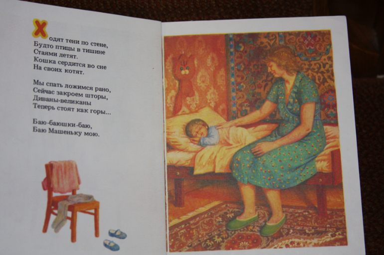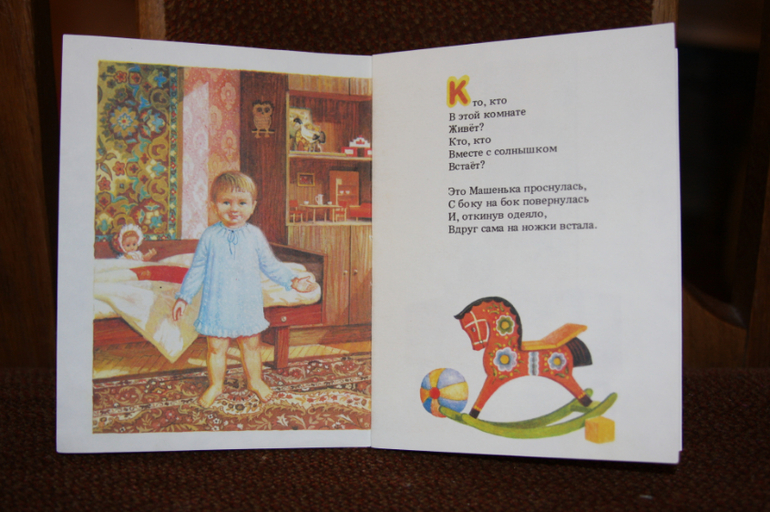 Точнее, моя-то, к сожалению, где-то у родителей затерялась, а это наша долгожданная букинистическая гостья. Каждая страничка - кусочек советского детства, когда у всех все было одинаковое. Игрушки, ковры, мебель - типовая квартира 80-х :)