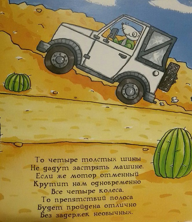Сначала сын обрадовался книге с красочной машиной на обложке. К сожалению, для него это оказалось самое интересное. При каждом прочтении через несколько страниц он теряет интерес к книге и упорно идет заниматься своими делами. Если бы книгу я купила, то тешила бы себя надеждой, что разнообразие машин в книге заставляет его вспомнить о своих игрушках и начать проверять весь ли модельный ряд у него представлен.