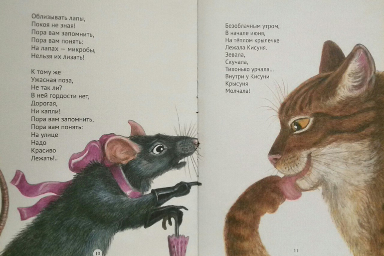 Увидев этого очаровательно кота с гитарой, дочка решила, что книгу надо брать. Однако узнав, что в книге стихи, она свой пыл поумерила и долго размышляла возьмем мы ее или нет. В итоге было принято решение книгу взять.