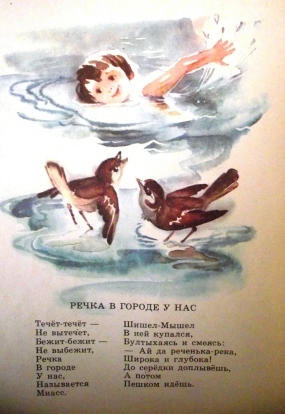 Лев Рахлис, моя детская книга, я ее обожала. Как я понимаю это уральский писатель, стихи чудесные у него, с юмором, ладные такие. Многие фразы из них прочно вошли в жизнь моей семьи :" Молоко дает корова, а корове кто дает? А корова покупает в магазине молоко", или " Там тихонечко в бидоне что-то звякнуло у вас, Это денежки за квас". А про реку, где до середины плывешь, а потом пешком идешь, это прям про нашу речку Юрюзань. Купаться ходили в детстве, сначала вброд идешь по пояс, потом по щиколотку:)