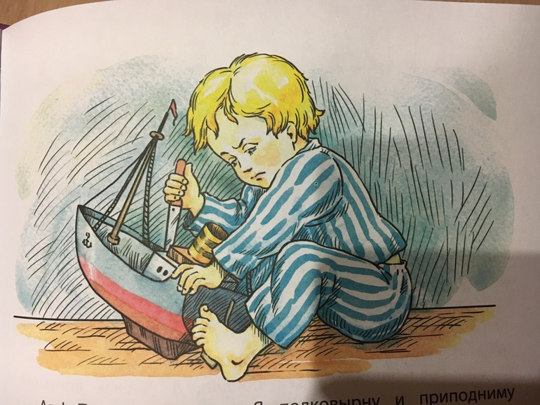 И вот читаю я ребенку книгу и волосы дыбом встают. Первый рассказ мальчик ковыряет огромным ножом игрушку!