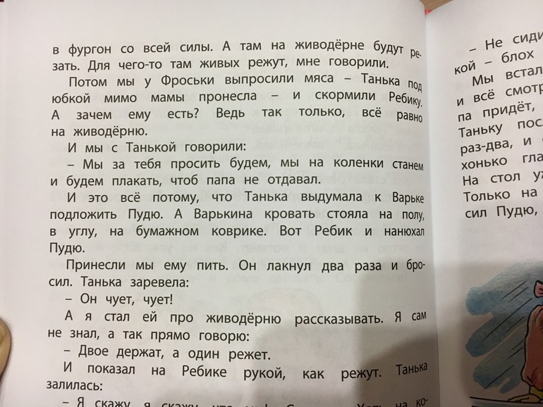 Я так прочитала "Когда папа был маленьким",с мыслями- фуфуфу как так можно относиться к ребенку.Меня если честно эмоции ребёнка в данной ситуации не очень волнуют,дети такие ситуации проще воспринимают, а вот читать про живодерню вслух мне самой было бы не очень приятно.