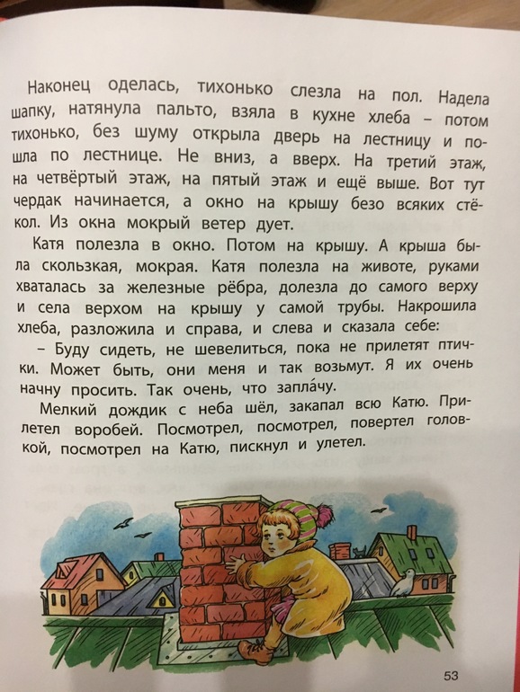 Еще в одном рассказе о том, как ребенок вылез в чердачное окно на крышу. хороший пример детям, которым читают эту книгу!