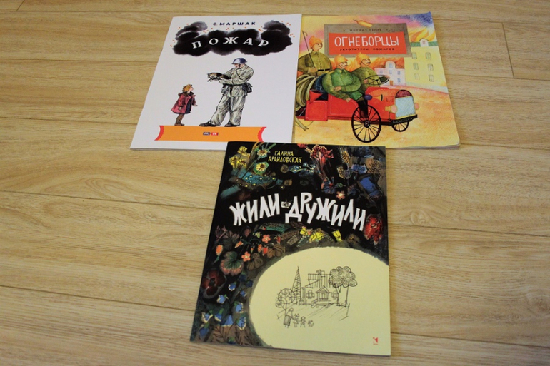 "Пожар" С. Маршак, "Огнборцы" и "Жили-Дружили". "Огнеборцы" раз сто перечитали. Я много нового узнала, а Никита решил стать пожарным. "Пожар" сам попросил прочитать, после того, как прослушал "Огнеборцы", ну а "Жили-Дружили" мне захотелось перечитать, а Никита с удовольствием послушал)