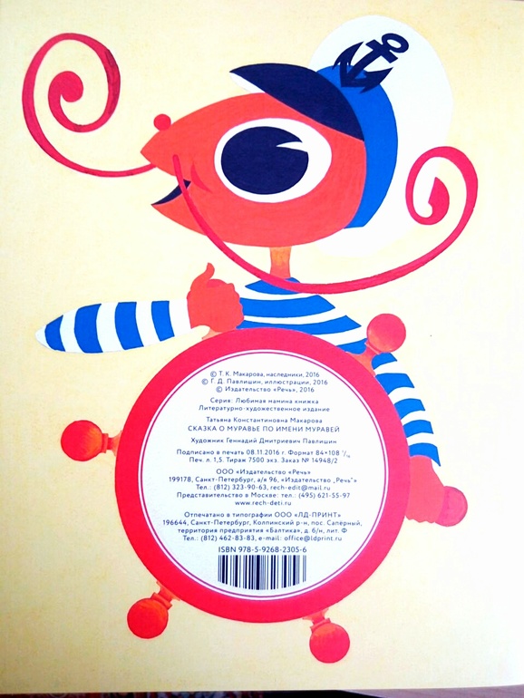 Какую замечательную сказку напечатала "Речь"! Всё в ней мне нравиться. Добрые, пазитивные стихи Татьяны Макаровой. Яркие, крупные иллюстрации Павлишина. Плотная бумага - гладкий офсет. Крупный шрифт и прекрасное оформление. И так сказка начинается...
