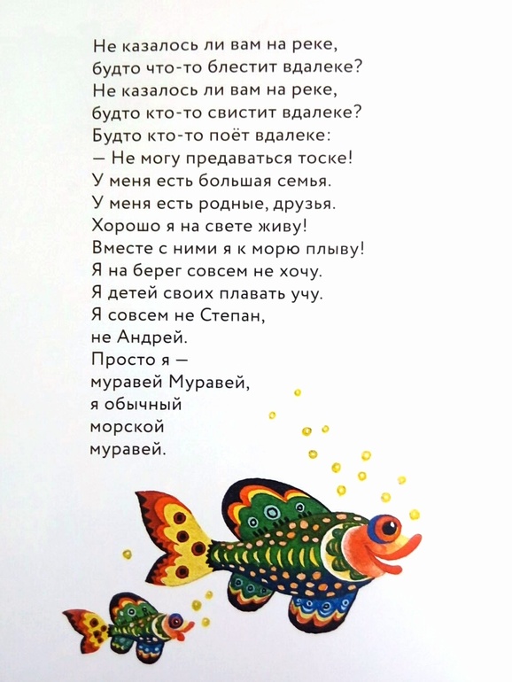 Но тут случилось новоднее. И новый дом Муравья понесло по воде. Но муравей и в этой ситуации не падает духом. Заканчивается история вот так: