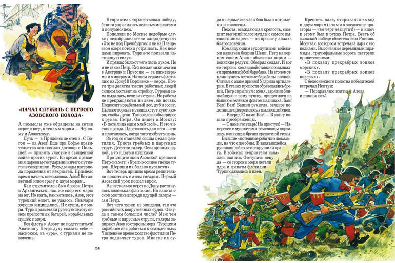 Рассказы, посвященные славным страницам истории становления и развития отечественного как торгового, так и военного флота (от вёсельных лодок к парусным фрегатам, от пароходов к броненосцам, подводным лодкам, ледоколам, авианосцам и так далее),а также великим морским сражениям Гангут, Чесменский бой, Наваринское сражение, Синопская битва и другие). Обращаем Ваше внимание на то, что на форзацах изображена история Российского флота в картинках от первых кораблей времён Алексея Михайловича до XX века.