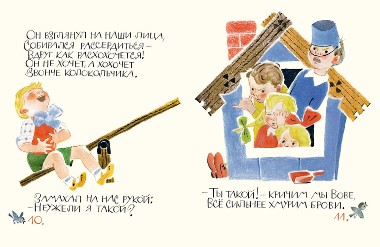 Эту поэтическую коллекцию оформил художник-классик Евгений Медведев. Классик он и по заслугам (за плечами более полувека творчества!), и по манере рисования. Каждая его иллюстрация детально проработана и увлекательна, словно отдельный рассказ. Вот шикарный кот тигрового окраса сидит у изразцовой печи - где ещё увидишь сегодня такую? Вот мама в старинном платье убаюкивает сына - а сколько вокруг необычных предметов! Вот мама играет на рояле - много ли детей сейчас имеют возможность станцевать дома под звуки фортепиано? Евгений Алексеевич, вкладывая в иллюстрации свои душу и творческую энергию, превращает детские книжки в увлекательные путешествия по эпохам, настроениям, традициям, фантазиям.