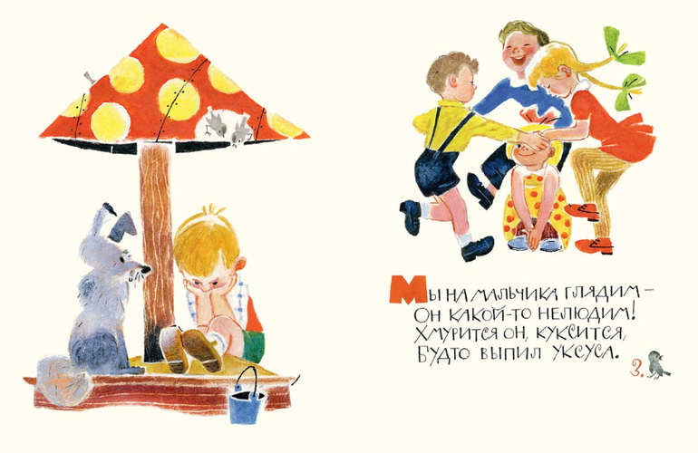 Ах, какой сердитый и угрюмый мальчик вышел на улицу погулять! Всех удивил: знакомиться ни с кем не захотел, играть в мячик отказался… Ну ничего, ребята найдут способ заставить его улыбнуться. Да не просто улыбнуться, а расхохотаться!
