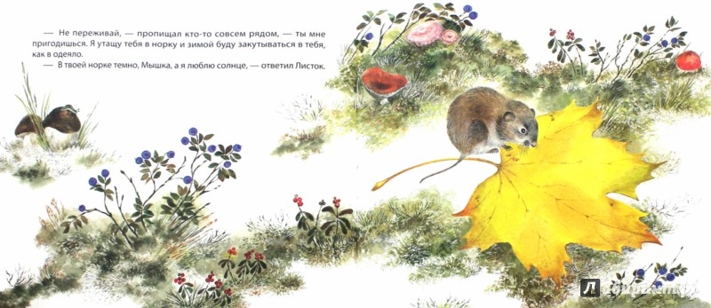 Осенним днём, когда на юг уже потянулись стаи птиц, маленький яркий кленовый лист падает с ветки дерева и оказывается на поляне... в самом начале удивительной сказочной истории, автор и художник которой - Наталья Никитична Чарушина-Капустина.