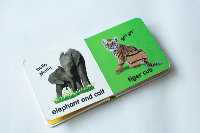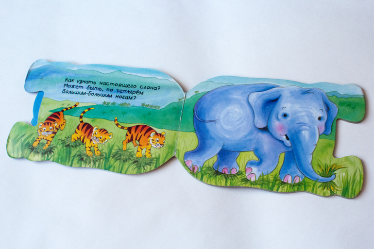 Книжка старая, я сейчас нигде не нашла в продаже, но очень милая. Маленький слон, Мойра Баттерфилд. Картонка, выполненная в форме слона, небольшая, с минимумом текста (на тему, как узнать слона), но очень милая. Сын обожает слонов во всех проявлениях, поэтому не могла не упомянуть.