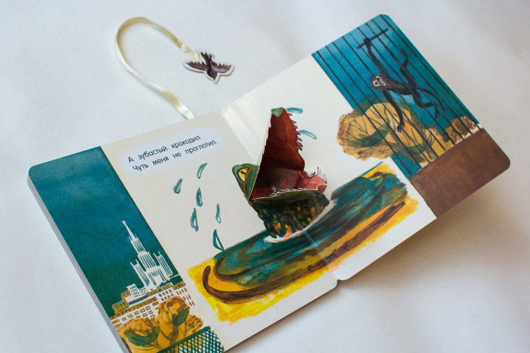 Побольше бы делали таких книг!!! Издательство лабиринт взяло одно стихотворения Маршака и сделало из него отличную книжку. Качественный картон, просто потрясающие акварельные иллюстрации, я каждый раз получаю настоящее удовольствие от чтения этой книги, на развороте минимум объектов, так еще и целое развлечение в виде закладки-воробья и объемного крокодила в конце. Не всегда я люблю читать эту книгу с ребенком, потому что в конце обязательно будет плач, что мы закончили, он может читать ее бесконечное количество раз. Очень быстро понял, как играть с воробьем и что он должен кушать на каждой страничке, так что целое представление. Очень рекомендую всем, у кого ее еще нет.