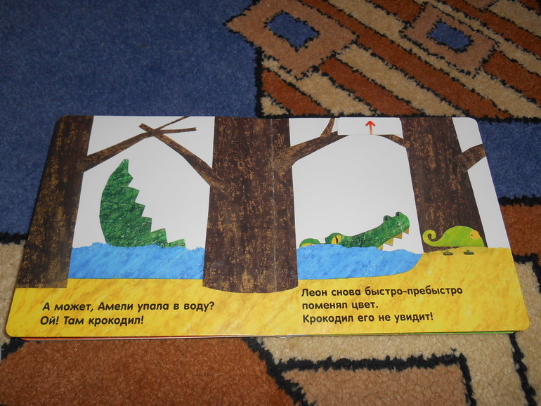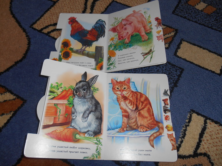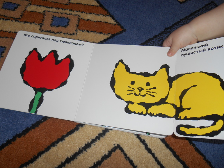 Книга с выдвигающимися элементами, очень много раз в день читали на протяжении всего месяца, я каждого животного озвучивала, у меня дочка аж вздрагивала немного и видимо чтобы пощекотать нервишки))))) несла мне эту книгу снова и снова!