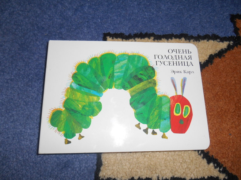 Эрик Карл "Очень голодная гусеница". Книжка в представлении не нуждается! Кто еще не знает про эту книжку?)))) Я была настроена скептически к этой книге, мне не нравятся эти картинки от слова "совсем" и они не нравятся мне до сих пор. Не знаю, кто меня дернул, но я ее купила. Дочке нравится тыкать пальчиками в дырочки и она слушает, что я ей читаю. Очень часто читаем не до конца. Возможно потому что дырочки заканчиваются!))))