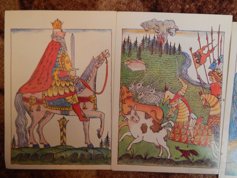 Какая прелесть! Книжечка с загадками смутно знакома, тоже была, скорее всего. А еще у нас есть в открытках сказки братьев Гримм и Хвастливый мышонок. Очень интересный формат - и не книжка, и не раскладушка.